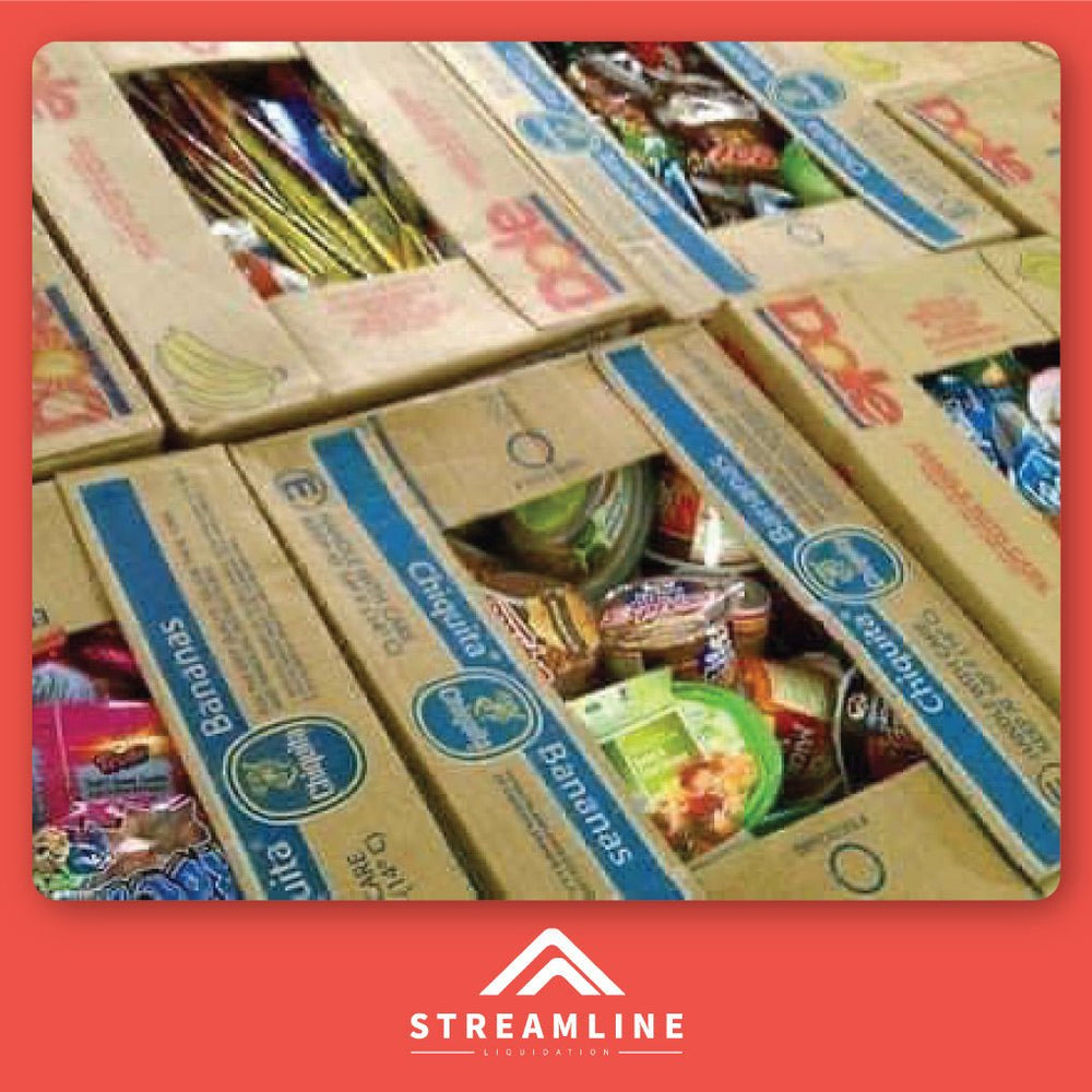 These boxes offer an assortment of liquidation grocery products suited for retailers, flea markets, or bulk sale ventures.